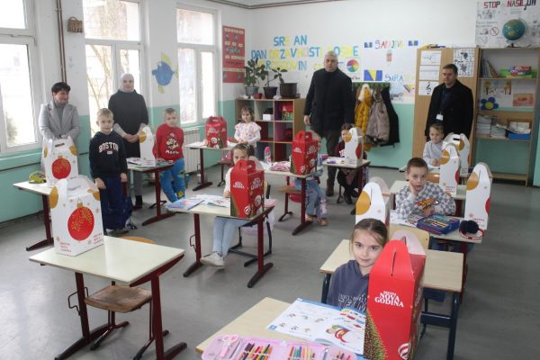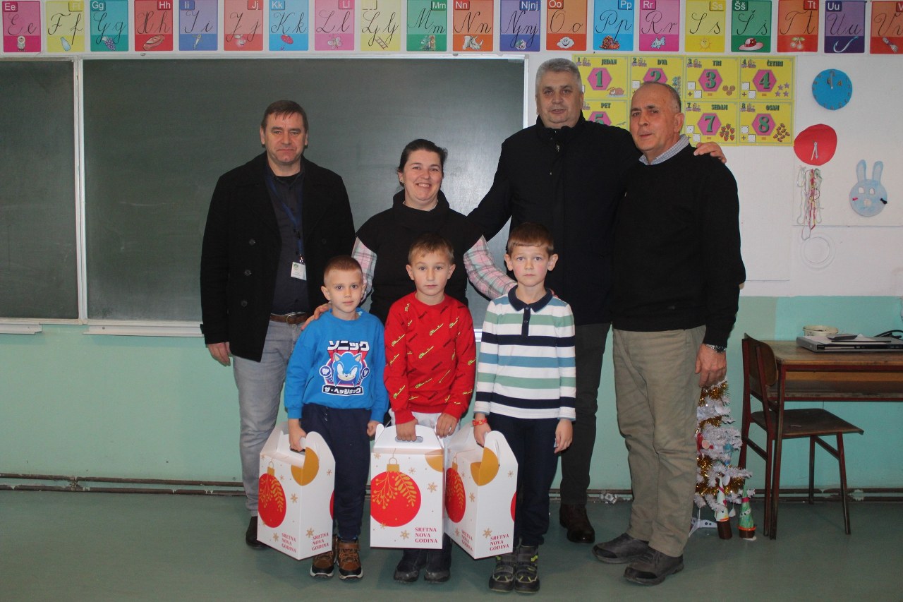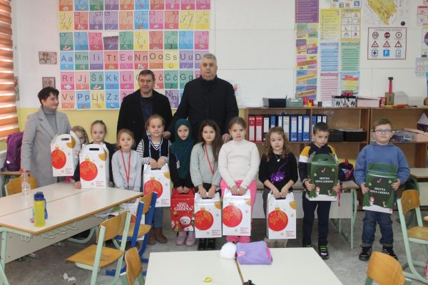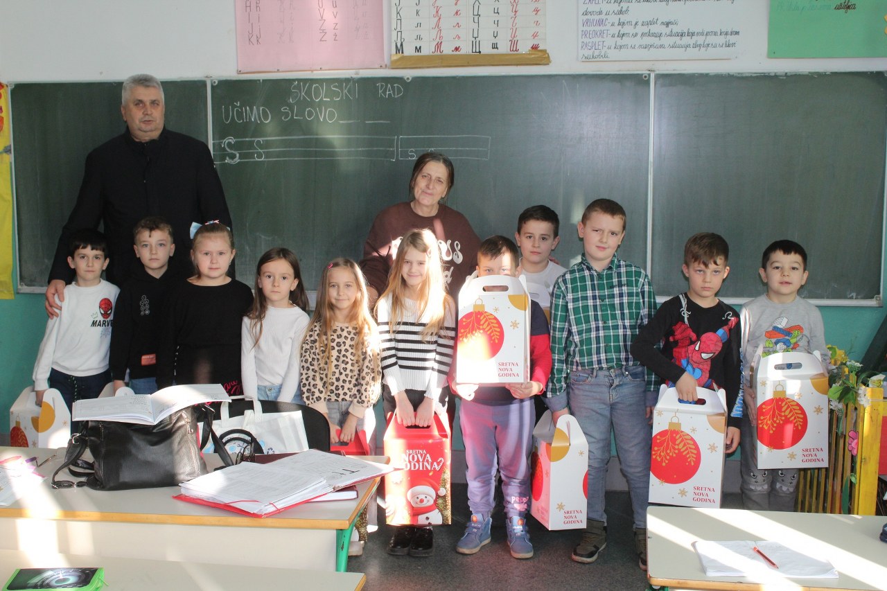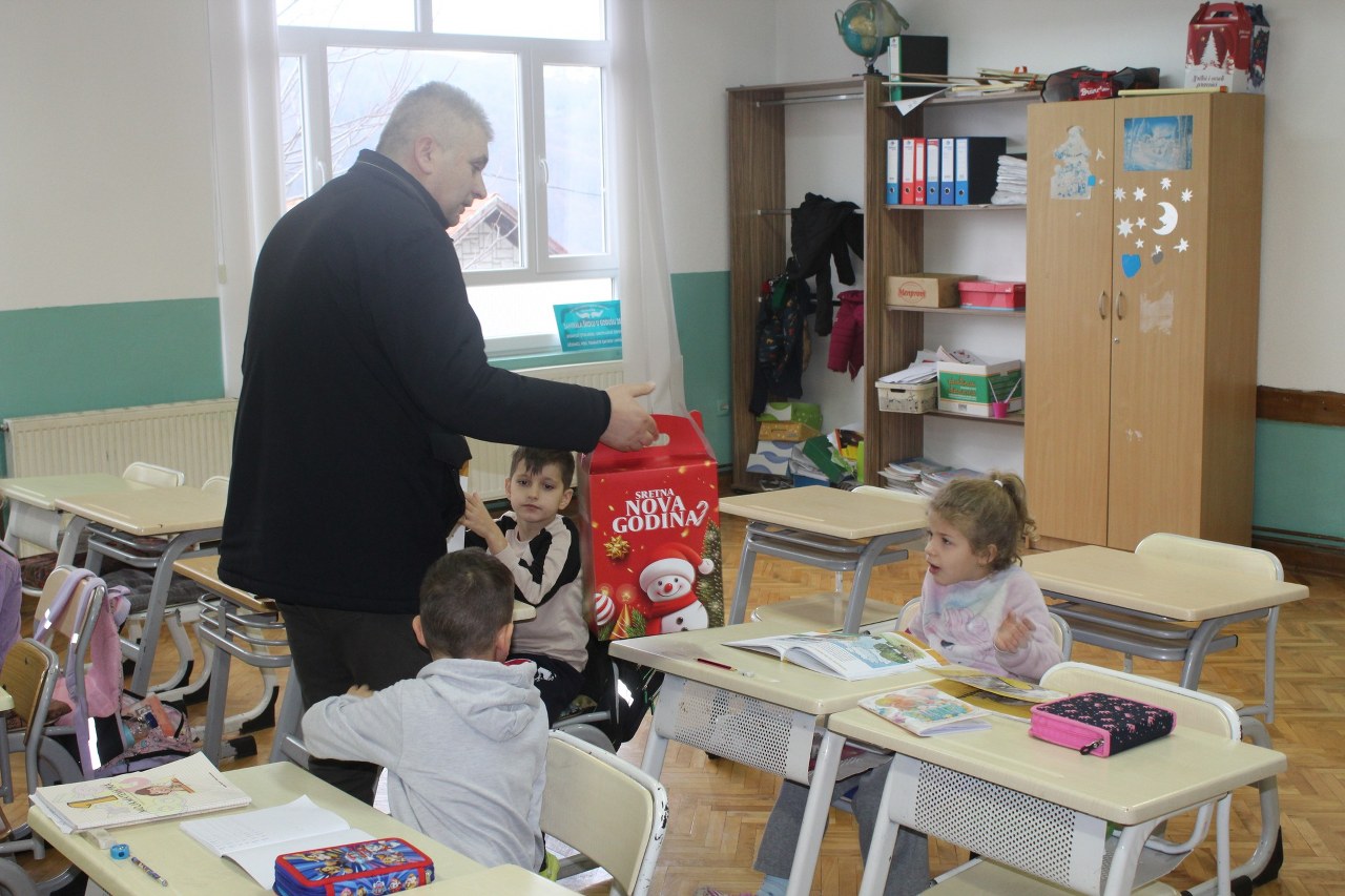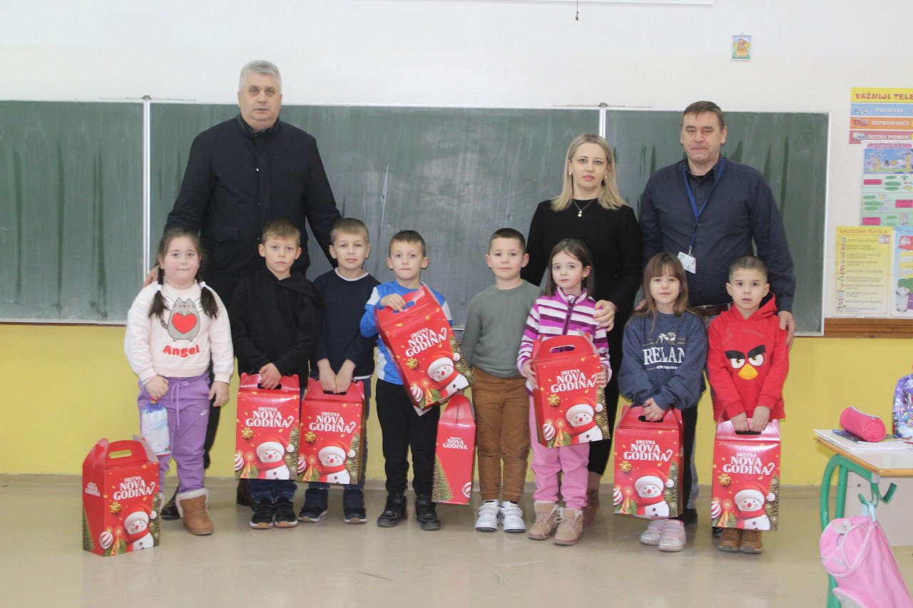 Podjela paketića i druženje sa mališanima obavljeno je u svim područnim školama te u centralnoj školi u Sapni.