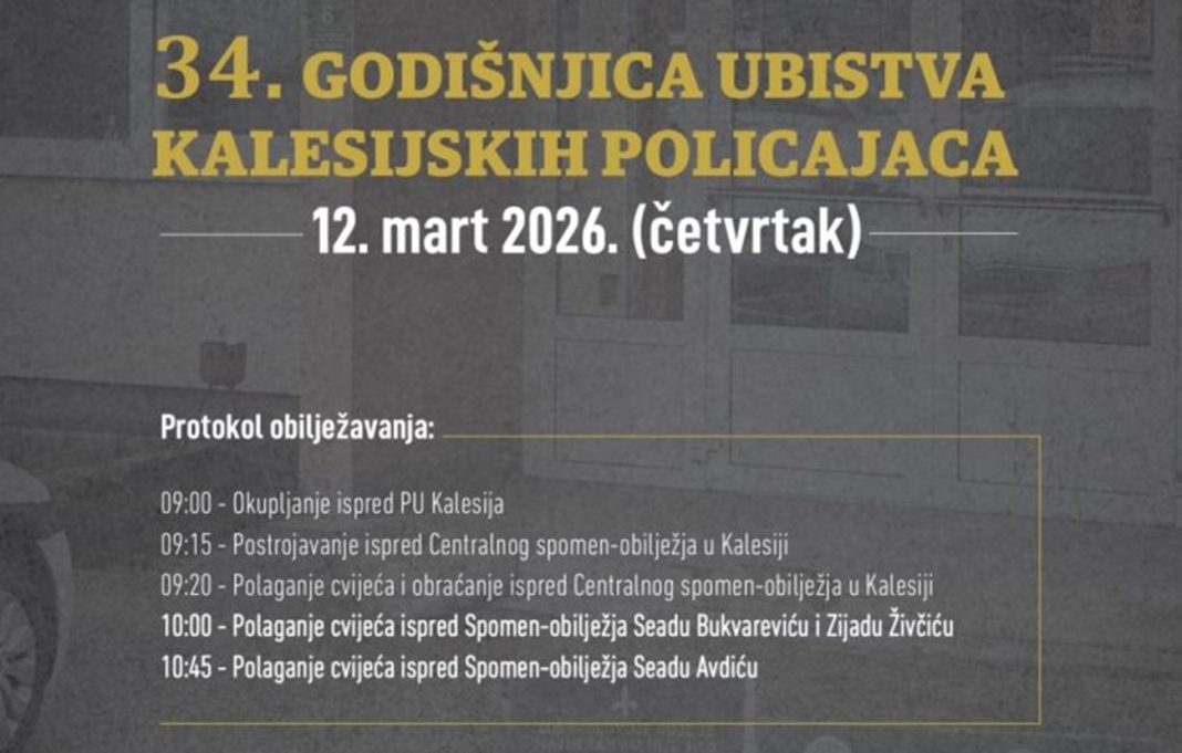 Organizacioni odbor za obilježavanje datuma i događaja bitnih za općnu Kalesija utvrdio je protok obilježavanja 34.godišnjice od ubistva kalesijskih policajaca Seada Bukvarevića, Zijada Živčića i Seada Avdića.